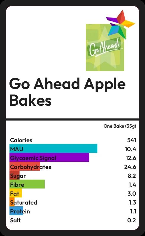 Go Ahead Apple Bakes contains 541.1 calories in one Bake (35g).