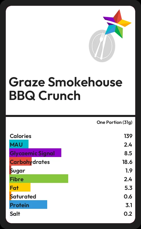 Graze Smokehouse BBQ Crunch contains 138.9 calories in one Portion (31g).