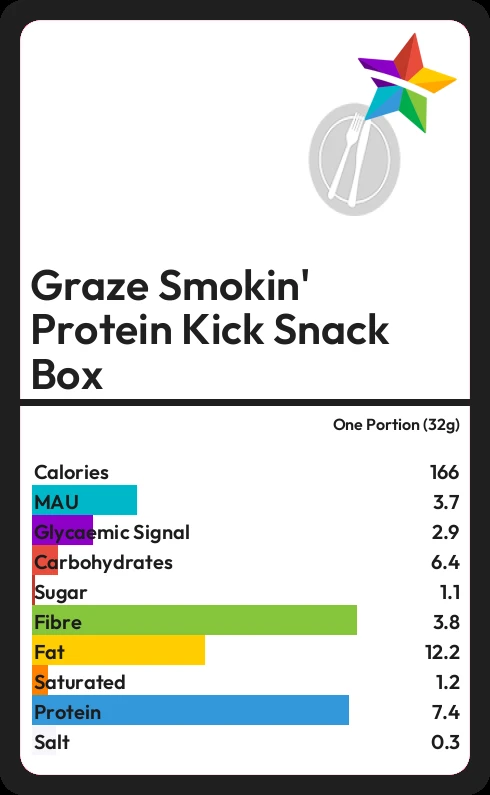 Graze Smokin' Protein Kick Snack Box contains 1.1g sugar in one Portion (32g)