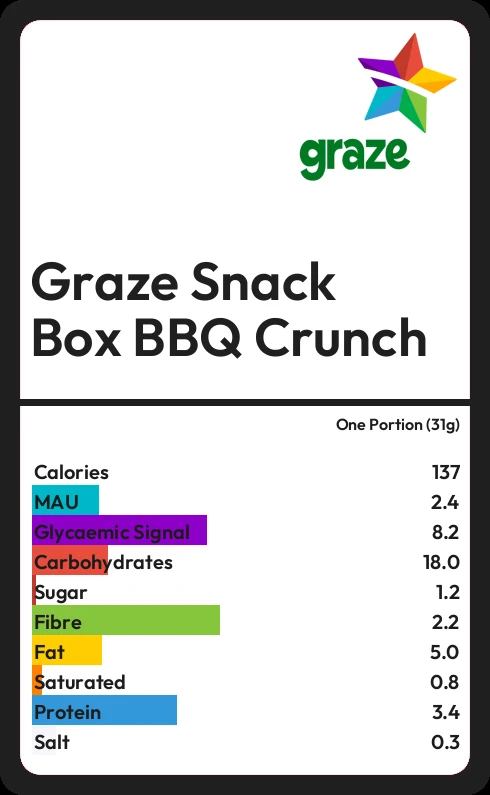 Graze Snack Box BBQ Crunch contains 1.2g sugar in one Portion (31g)