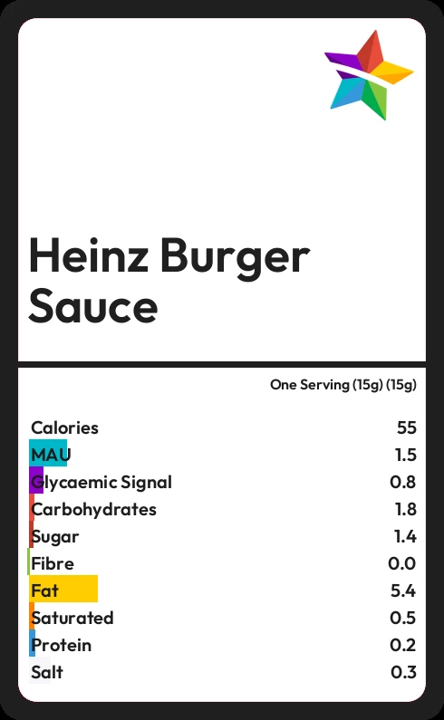 Heinz Burger Sauce contains 55.2 calories in one Serving (15g) (15g).