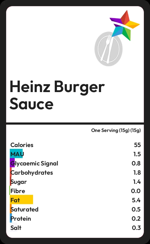 Heinz Burger Sauce contains 55.2 calories in one Serving (15g) (15g).