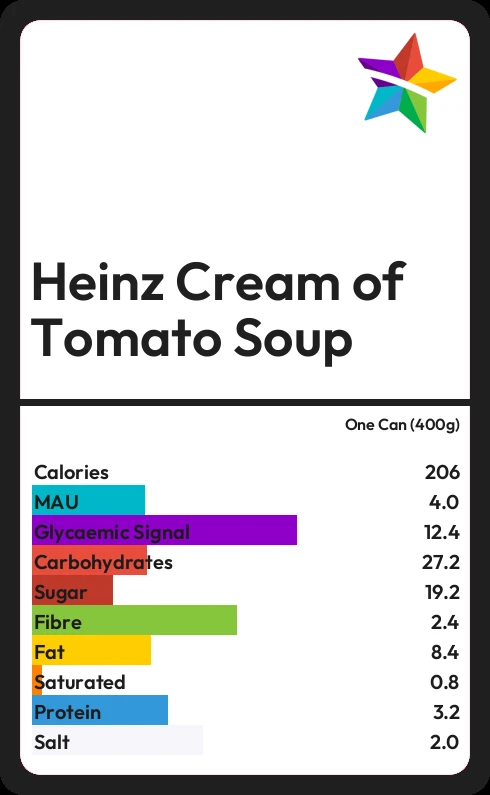 Heinz Cream of Tomato Soup contains 204 calories in one Can (400g).