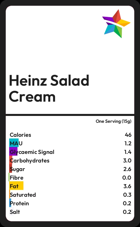 Heinz Salad Cream contains 45.6 calories in one Serving (15g).