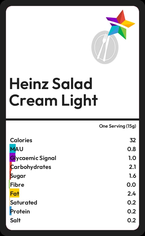 Heinz Salad Cream Light contains 1.6g sugar in one Serving (15g)