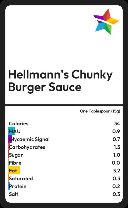 How much fat in Hellmann's Chunky Burger Sauce?