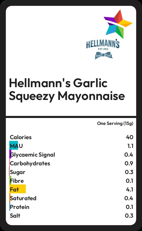 How much fat in Hellmann's Garlic Squeezy Mayonnaise?