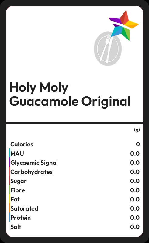 Holy Moly Guacamole Original contains 1.0g sugar in 100g