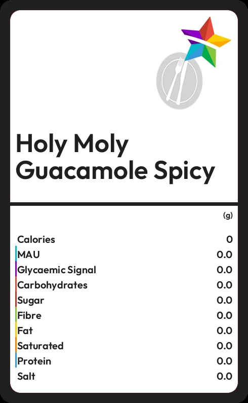 Holy Moly Guacamole Spicy contains 1.0g sugar in 100g