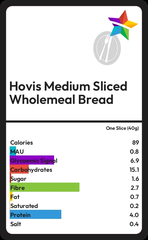 Hovis Medium Sliced Wholemeal Bread contains 1.6g sugar in one Slice (40g)
