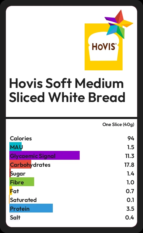 Hovis Soft Medium Sliced White Bread contains 1.4g sugar in one Slice (40g)
