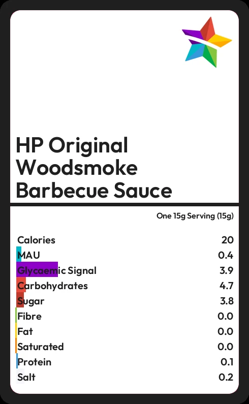 HP Original Woodsmoke Barbecue Sauce contains 20.3 calories in one 15g Serving (15g).