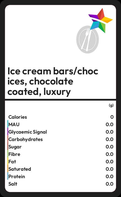 Ice cream bars/choc ices, chocolate coated, luxury contains 32.9g sugar in 100g - that is around 8 cubes of sugar.