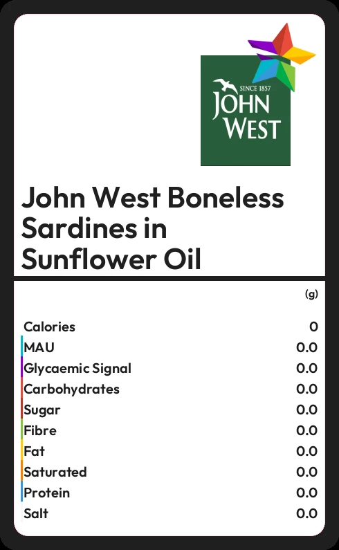 How much sugar in John West Boneless Sardines in Sunflower Oil?