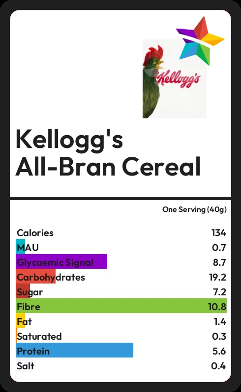 Kellogg's All-Bran Cereal contains 7.2g sugar in one Serving (40g) - that is around 2 cubes of sugar.