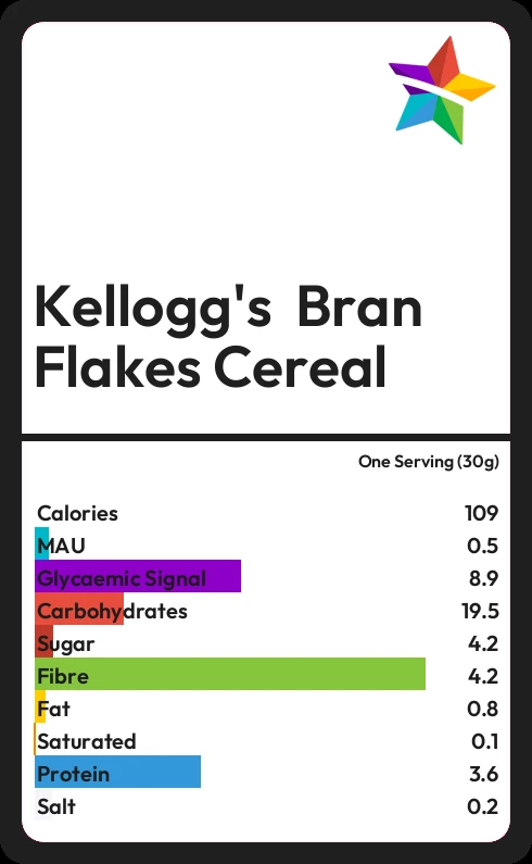 Kellogg's Bran Flakes Cereal contains 108.6 calories in one Serving (30g).