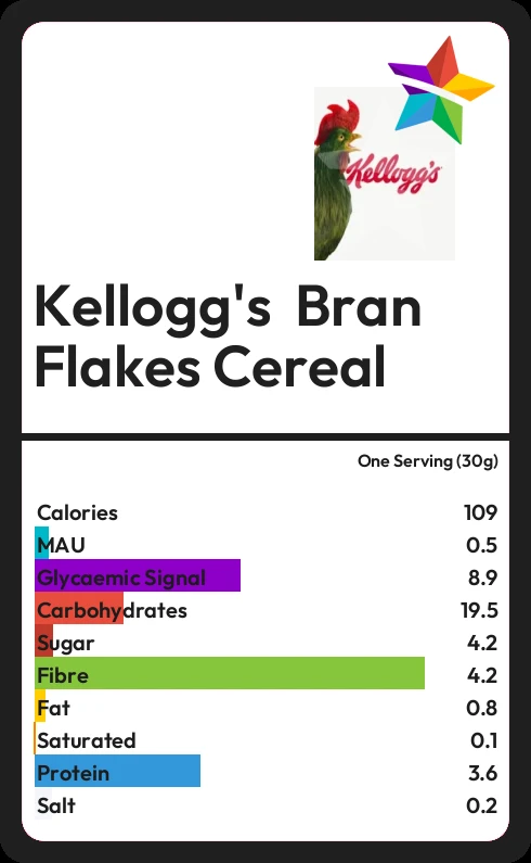 Kellogg's Bran Flakes Cereal contains 108.6 calories in one Serving (30g).