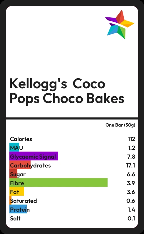 Kellogg's Coco Pops Choco Bakes contains 111.9 calories in one Bar (30g).