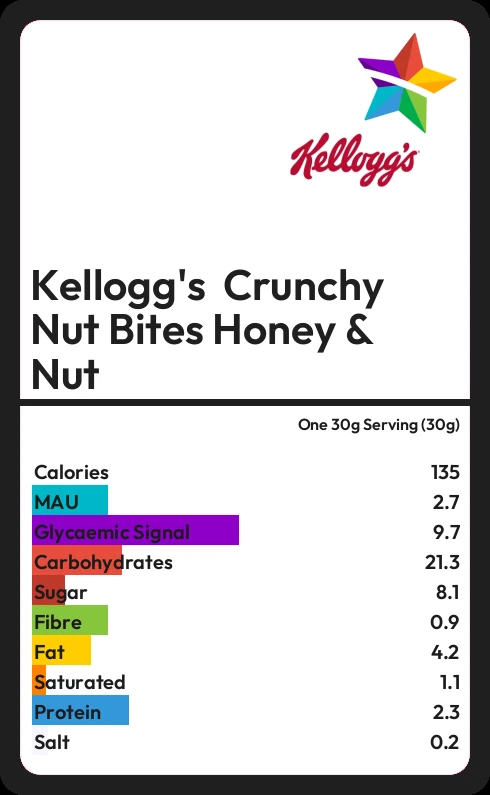 Kellogg's Crunchy Nut Bites Honey & Nut contains 134.7 calories in one 30g Serving (30g).