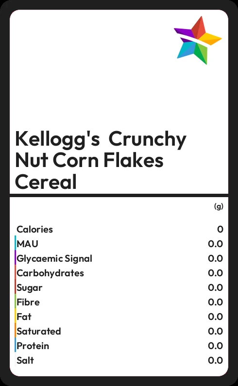 Kellogg's Crunchy Nut Corn Flakes Cereal contains 35.0g sugar in 100g - that is around 9 cubes of sugar.