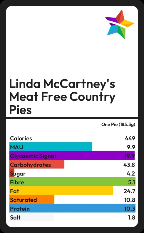 Linda McCartney's Meat Free Country Pies contains 449.1 calories in one Pie (183.3g).