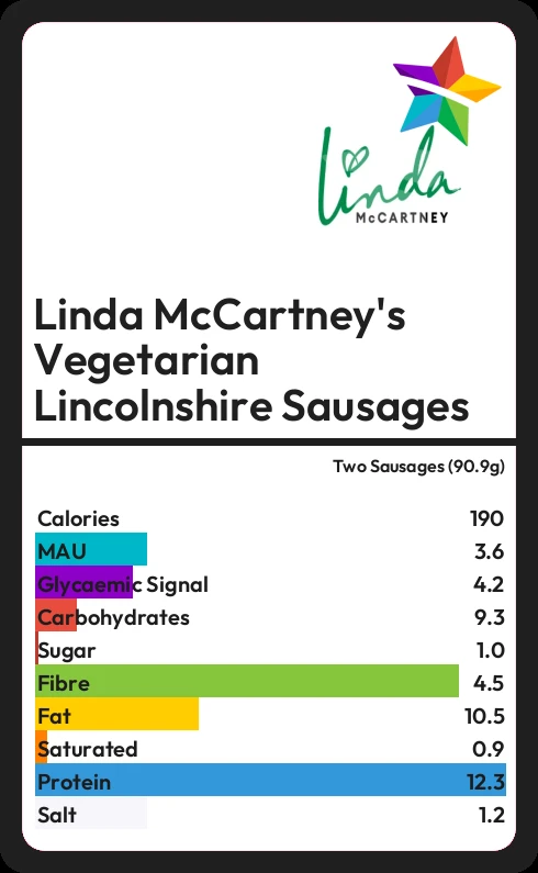 Linda McCartney's Vegetarian Lincolnshire Sausages contains 1.0g sugar in two Sausages (90.9g)