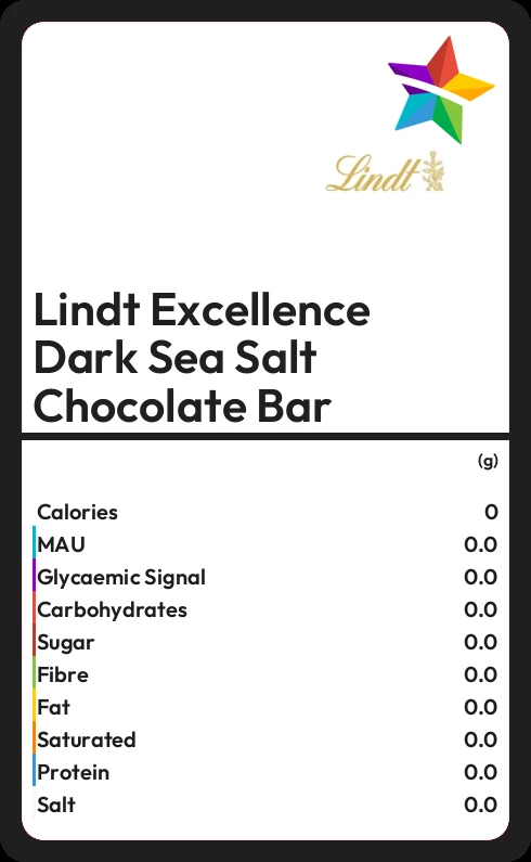 Lindt Excellence Dark Sea Salt Chocolate Bar contains 48.0g sugar in 100g - that is around 12 cubes of sugar.