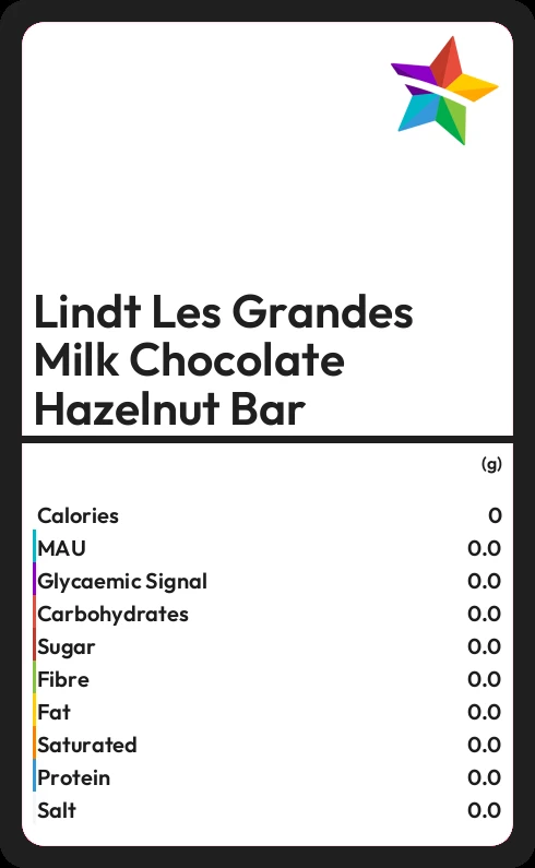 How much sugar in Lindt Les Grandes Milk Chocolate Hazelnut Bar?