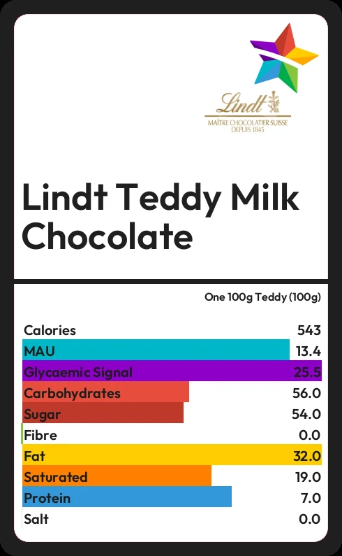 How much sugar in Lindt Teddy Milk Chocolate?