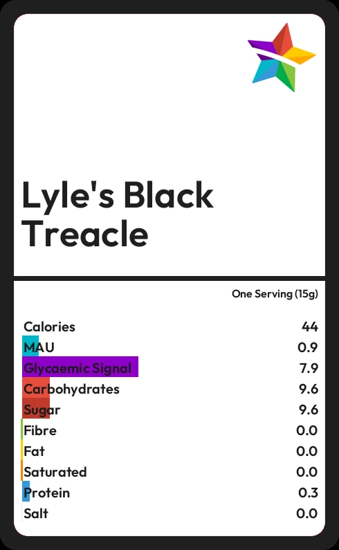Lyle's Black Treacle contains 9.6g sugar in one Serving (15g) - that is around 2 cubes of sugar.