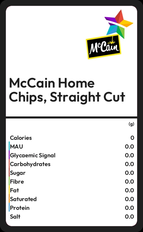 McCain Home Chips, Straight Cut contains 0.5g sugar in 100g