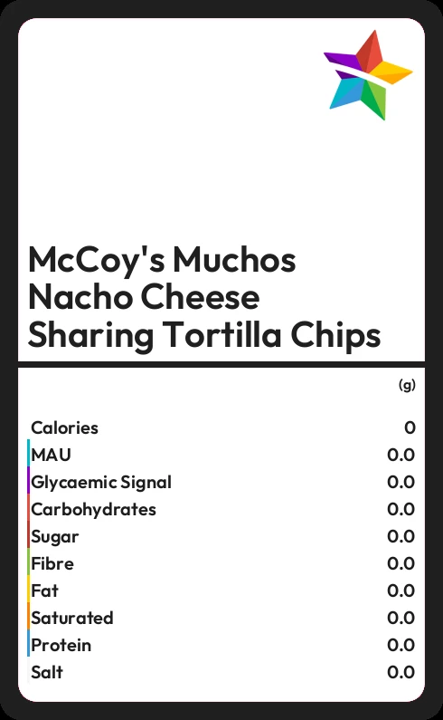 McCoy's Muchos Nacho Cheese Sharing Tortilla Chips contains 534 calories in 100g.