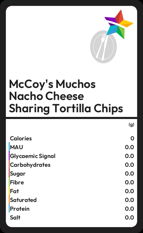 McCoy's Muchos Nacho Cheese Sharing Tortilla Chips contains 534 calories in 100g.