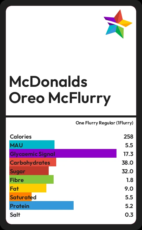 McDonalds Oreo McFlurry contains 258 calories in one Flurry Regular (1Flurry).