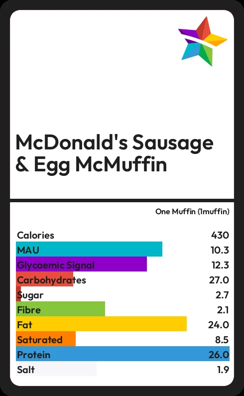 Ingredients English Muffin WHEAT Flour (contains Calcium, Iron, Niacin, Thiamine), Water, Muffin Topping (Yellow Polenta, Rice Flour), Muffin Mix (Allergen Ingredient: WHEAT Gluten, Dough Acidifier (Allergen Ingredient: RYE), Preservative (Calcium Propionate), Emulsifiers (Mono- and Diacetyl Tartaric Acid Esters of Mono- and Diglycerides of Fatty Acids, Mono- and Diglycerides of Fatty Acids), Acidity Regulator (Tartaric Acid), Antioxidant (Ascorbic Acid), Yeast, Sugar, Rapeseed Oil, De-activated Yeast. Potential Allergen Ingredient: N. B. May contain traces of sesame seeds. Pork Sausage Patty Pork (97%) Salt, Dextrose, Herb and Herb Extract, Glucose Syrup, Spice, Yeast Extract. Egg Allergen Ingredient: Free Range EGG. UK sourced free range egg produced to Lion Quality standards. N. B. Cooked in the restaurants using Liquid Vegetable and Dairy Fat Blend (see ingredients below) which contains Allergen Ingredient: MILK. Cheddar Cheese Slice (processed) Vegetarian Cheddar (51%) (Allergen Ingredient: MILK), Water, Vegetarian Cheese (9%) (Allergen Ingredient: MILK), Whey Powder (Allergen Ingredient: MILK), Butter (Allergen Ingredient: MILK), Emulsifying Salts (Trisodium Citrate, Citric Acid), Allergen Ingredient: MILK Proteins, Natural Cheese Flavouring (Allergen Ingredient: MILK), Salt, Colours (Beta Carotene, Paprika Extract), Anti-Caking Agent (Sunflower Lecithin Oil). Liquid Vegetable and Dairy Fat Blend Vegetable Oil (Rapeseed), Water, Butter Oil (Allergen Ingredient: MILK), milk-powder">Buttermilk Powder (Allergen Ingredient: MILK), Salt (0.6%), Emulsifiers (Mono- and Diglycerides of Fatty Acids, Citric Acid Esters of Mono- and Diglycerides of Fatty Acids, Sodium Stearoyl-2-Lactylate), Flavour (Natural Butter Flavour (Allergen Ingredient: MILK)), Colour (Natural Beta Carotene)