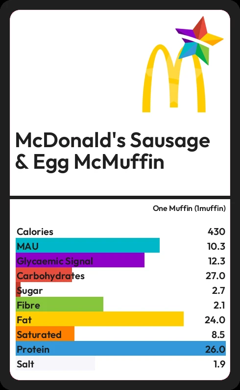 Ingredients English Muffin WHEAT Flour (contains Calcium, Iron, Niacin, Thiamine), Water, Muffin Topping (Yellow Polenta, Rice Flour), Muffin Mix (Allergen Ingredient: WHEAT Gluten, Dough Acidifier (Allergen Ingredient: RYE), Preservative (Calcium Propionate), Emulsifiers (Mono- and Diacetyl Tartaric Acid Esters of Mono- and Diglycerides of Fatty Acids, Mono- and Diglycerides of Fatty Acids), Acidity Regulator (Tartaric Acid), Antioxidant (Ascorbic Acid), Yeast, Sugar, Rapeseed Oil, De-activated Yeast. Potential Allergen Ingredient: N. B. May contain traces of sesame seeds. Pork Sausage Patty Pork (97%) Salt, Dextrose, Herb and Herb Extract, Glucose Syrup, Spice, Yeast Extract. Egg Allergen Ingredient: Free Range EGG. UK sourced free range egg produced to Lion Quality standards. N. B. Cooked in the restaurants using Liquid Vegetable and Dairy Fat Blend (see ingredients below) which contains Allergen Ingredient: MILK. Cheddar Cheese Slice (processed) Vegetarian Cheddar (51%) (Allergen Ingredient: MILK), Water, Vegetarian Cheese (9%) (Allergen Ingredient: MILK), Whey Powder (Allergen Ingredient: MILK), Butter (Allergen Ingredient: MILK), Emulsifying Salts (Trisodium Citrate, Citric Acid), Allergen Ingredient: MILK Proteins, Natural Cheese Flavouring (Allergen Ingredient: MILK), Salt, Colours (Beta Carotene, Paprika Extract), Anti-Caking Agent (Sunflower Lecithin Oil). Liquid Vegetable and Dairy Fat Blend Vegetable Oil (Rapeseed), Water, Butter Oil (Allergen Ingredient: MILK), milk-powder">Buttermilk Powder (Allergen Ingredient: MILK), Salt (0.6%), Emulsifiers (Mono- and Diglycerides of Fatty Acids, Citric Acid Esters of Mono- and Diglycerides of Fatty Acids, Sodium Stearoyl-2-Lactylate), Flavour (Natural Butter Flavour (Allergen Ingredient: MILK)), Colour (Natural Beta Carotene)