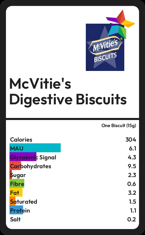 McVitie's Digestive Biscuits contains 303.8 calories in one Biscuit (15g).