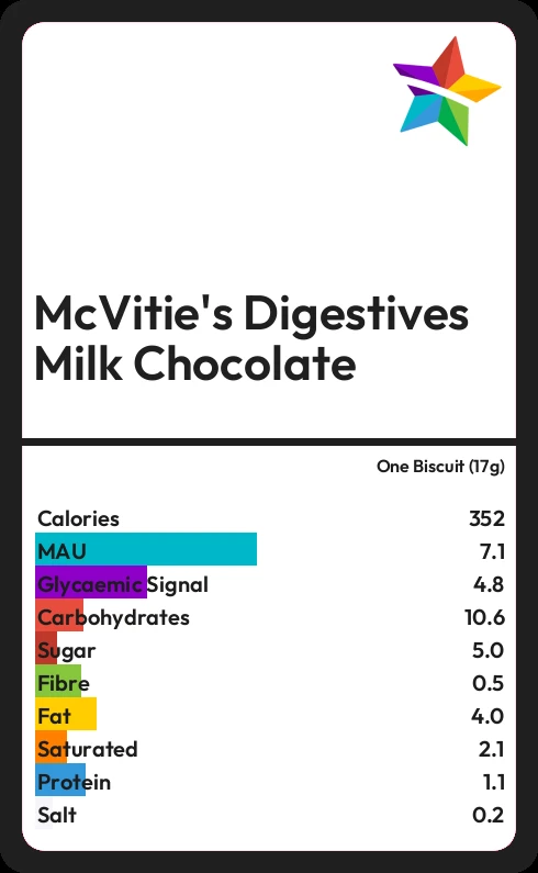 McVitie's Digestives Milk Chocolate contains 352.1 calories in one Biscuit (17g).