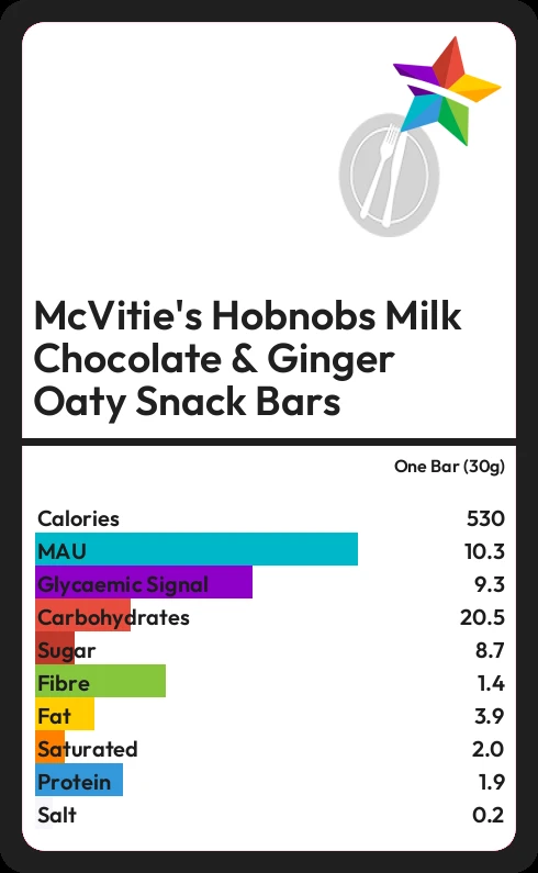 McVitie's Hobnobs Milk Chocolate & Ginger Oaty Snack Bars contains 530.4 calories in one Bar (30g).