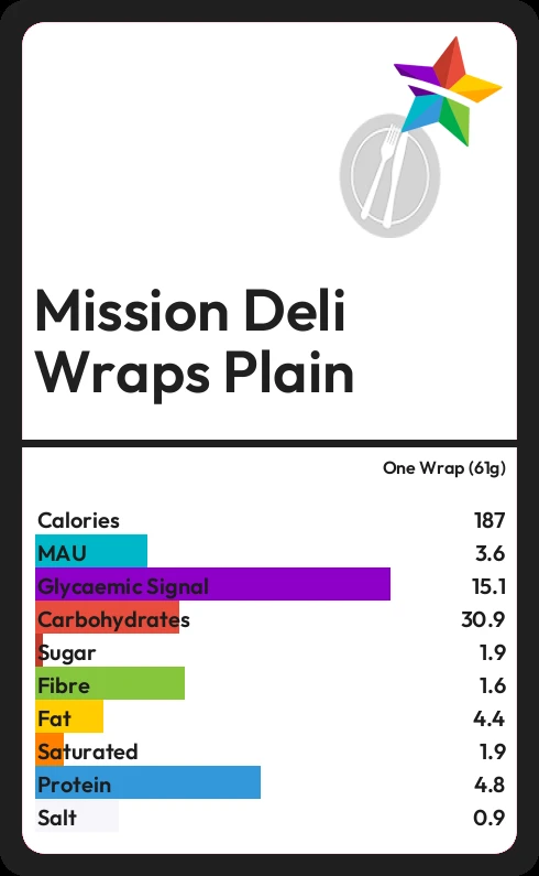 Mission Deli Wraps Plain contains 187.3 calories in one Wrap (61g).