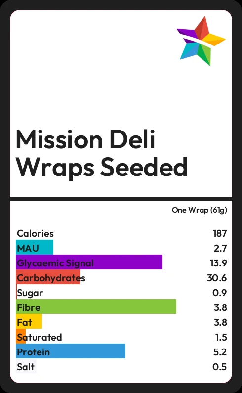 Mission Deli Wraps Seeded contains 186.7 calories in one Wrap (61g).