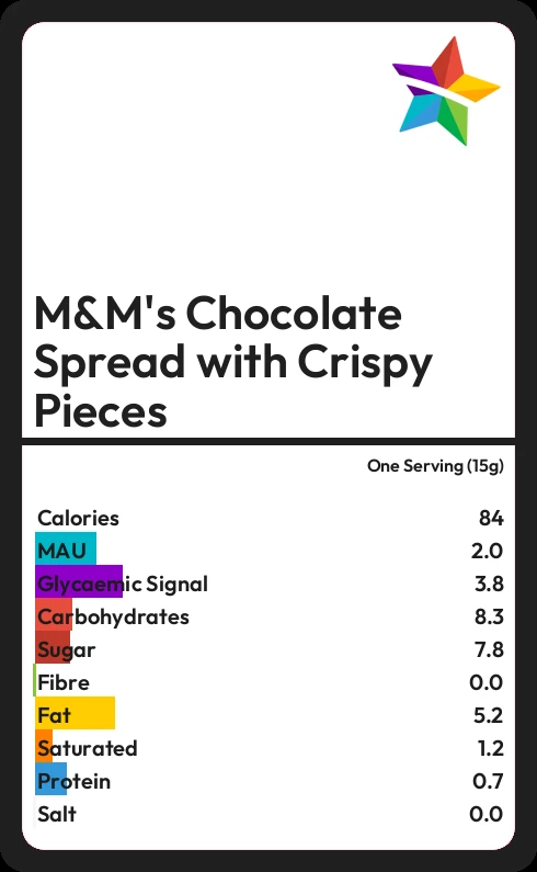 M&M's Chocolate Spread with Crispy Pieces contains 83.9 calories in one Serving (15g).