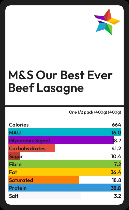 How much fat in M&S Our Best Ever Beef Lasagne?