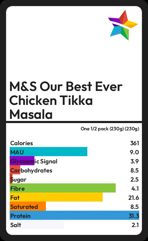 How much fat in M&S Our Best Ever Chicken Tikka Masala?