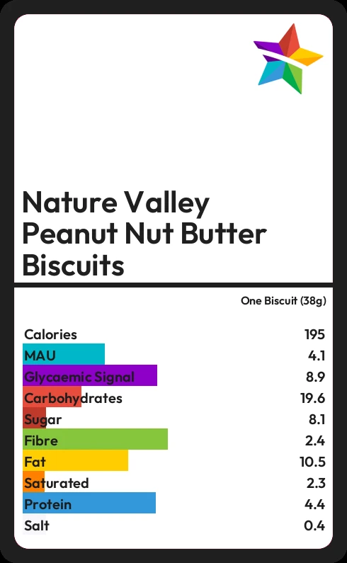 Nature Valley Peanut Nut Butter Biscuits contains 8.1g sugar in one Biscuit (38g) - that is around 2 cubes of sugar.