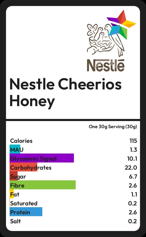 Nestle Cheerios Honey contains 114.9 calories in one 30g Serving (30g).