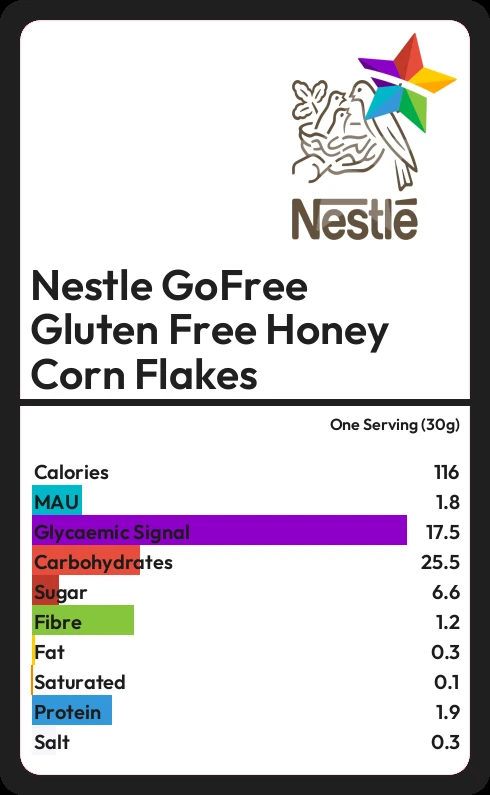 Nestle GoFree Gluten Free Honey Corn Flakes contains 116.1 calories in one Serving (30g).