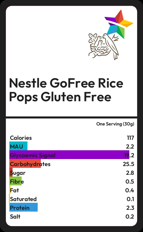 Nestle GoFree Rice Pops Gluten Free contains 117.3 calories in one Serving (30g).