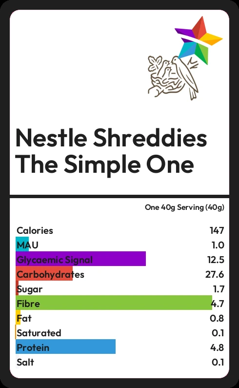 Nestle Shreddies The Simple One contains 1.7g sugar in one 40g Serving (40g)