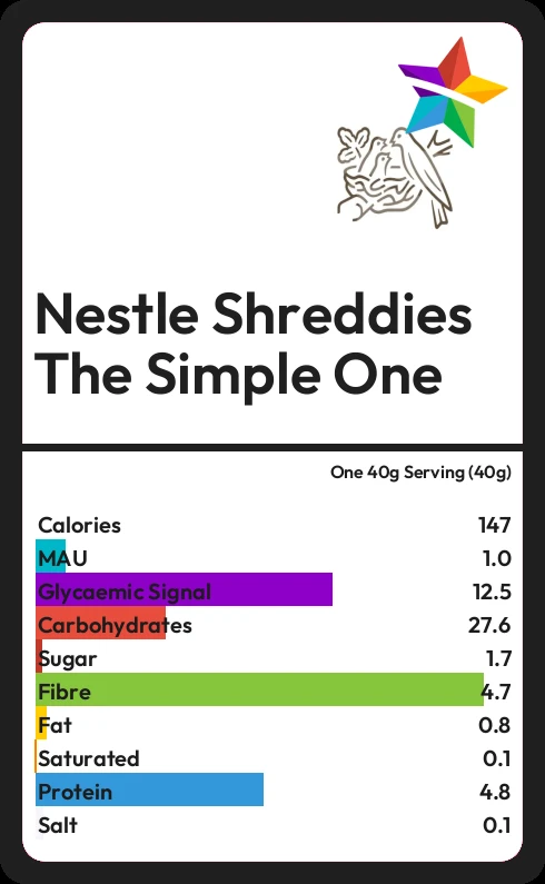 Nestle Shreddies The Simple One contains 1.7g sugar in one 40g Serving (40g)